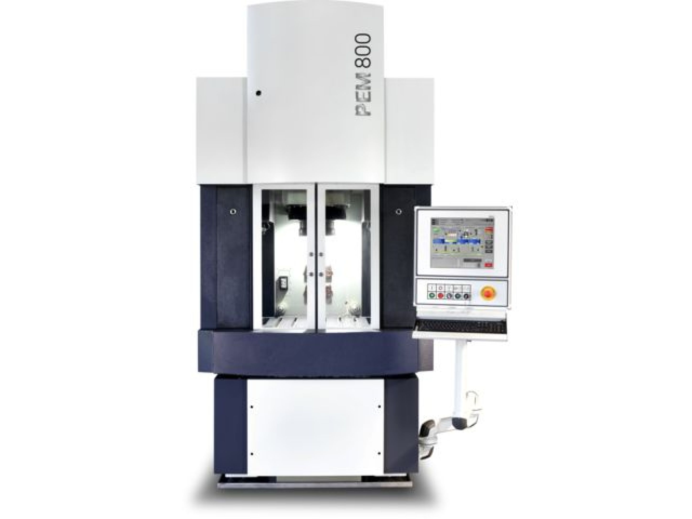 Präzise Elektro Chemische Metallbearbeitung ermöglicht die berührungslose und präzise Bearbeitung von Metallteilen. Zwischen einem negativ gepolten Werkzeug (Kathode) und einem positiven Werkstück (Anode) fließt Salzwasser und verhält sich wie ein elektrisch leitfähiger Elektrolyt. Es löst ionisiertes Material anodisch im Bearbeitungsspalt zwischen Elektrode und Werkstück auf. Folglich wird die Form der Elektrode invers auf das Metallwerkstück projiziert. Der präzise Pulsstrom synchronisiert mit der oszillierenden Werkzeugelektrode und der sehr kleine Arbeitsspalt sind die Basis für die Präzision dieser Technologie. Das PECM-Verfahren bietet eine hochpräzise und wirtschaftliche Fertigung ohne prozessbedingten Werkzeugverschleiß. Werkstücke können mit einer Reproduzier Genauigkeit und Reproduzierbarkeit von ca. 2 µm und Ra < 0,03 µm berührungs- und spannungsfrei ohne Chemie hergestellt werden.